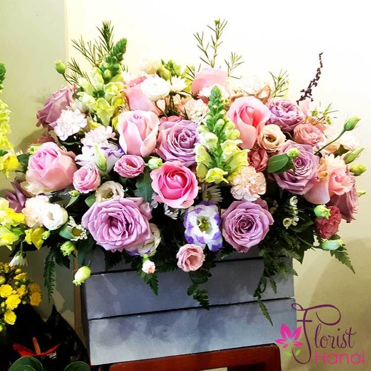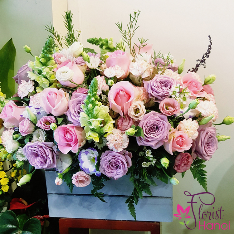 | Kind of flowers | Snapdragon, Lisianthus, Pink roses, Purple roses, Waxflower |