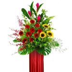 Florist Hanoi provides profesional grand opening flowers stands, with wooden and meatalic stands available. Our standing grand opening flower gift baskets come in different sizes, from 150cm to 200cm (the height).