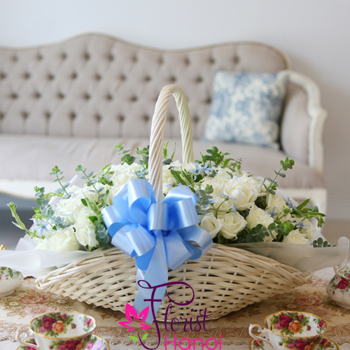 If the simplicity of white rose makes a perfect expression of your feelings, sending a bouquet of 100 fresh blooms will speak volumes. Our florists gather 100 fresh, premium long-stem white roses in a basket to create a luxurious gift that always impresses. Perfect for any occasion, this truly original arrangement makes a gorgeous display at weddings and birthday.