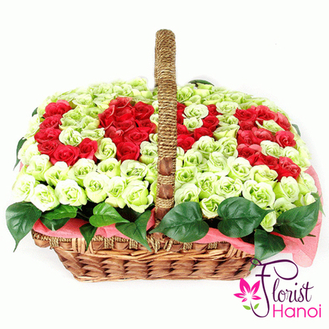 This stunning flower bouquet consists of red roses and green roses. Is there any better way to say :”I love you”. This 99 roses basket is hot love and fiery passion, the best gift to your lover, she will melt in your thickest love.ΓÇï