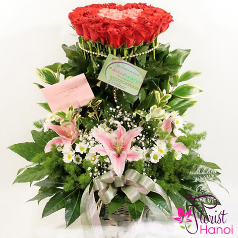 Basket of red rose and lilies