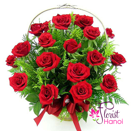 Beautiful red rose basket in Hanoi