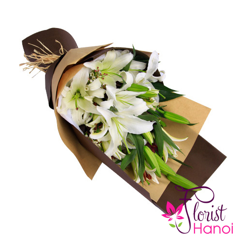 A beautiful combination of flowers can express a wonferful message of love, admiration and peace. Our white lily flower bouquet sends a positive message with its white lilies, each of which is pure and graceful in its perfection. White lilies are symbolic of devotion and humility. This perfect gift is excellent for Valentine’s Day, an anniversaty or any other holiday.