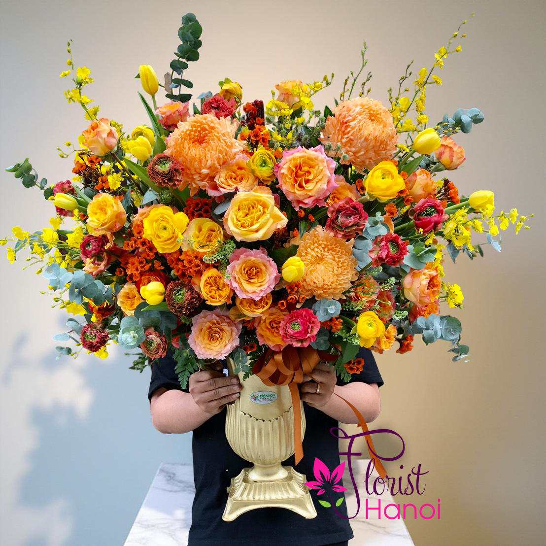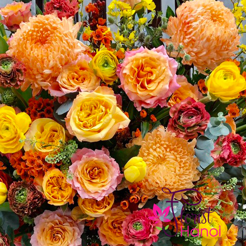 | Kind of flowers | Orange roses, yellow roses, tulips, peony chrysanthemum |