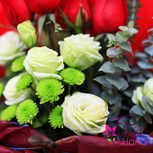 Like in a warm, passionate and sincere embrace, like in a vibrant dance the velvety green lisianthus and red roses have joined. Whether you want to declare your loved to a special someone or you just want to send the confirmation of your sincere feelings that you have, certaninly this is the ideal fragant gift with which you will surely impress. If the red roses, alwways the perfect messenger for heart affairs is the symbol of enternal and romantic love, the white rose is the symbol of purity, innocence, virtue and sincerity, confirming respect for your beloved or undying love.