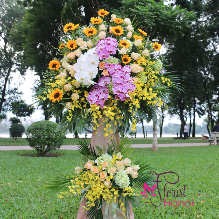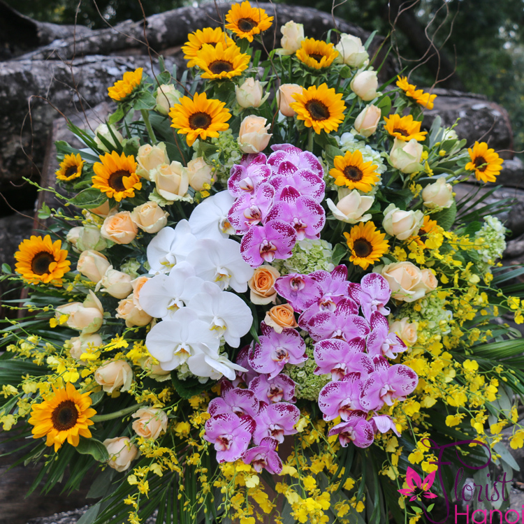 Wishing “Congratulations” never looked this good! This flower is a grand opening flower stand curated with oh-so-gorgeous sunflowers, moth orchids and beautiful roses that’s just perfect for opening day! Plus, it comes with a bespoke stand with green fillers.