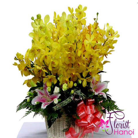 With 10 multiple – blossom stems of dendrobium orchids – an enchanting harmony of yellow and pink – as shown. This arrangement is fit for Mom’s birthday, Mother’s day…
