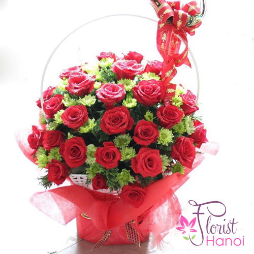 When we speak of a flower that will represent as best as possible the feelings of deep love and sincere devotion, we inevitably think of red roses. With their smooth petals and irresitible scent, they have caressed the hearts of people and sparked their imagination from the oldest times. In a woven basket are placed red roses like a flame of passion, on many levels, so that each can enjoy full attention. Offer it to a loved one as a sign of your romance or usde it to bring beauty to special occasion.