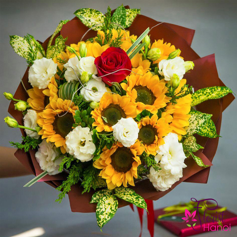 Hanoi sunflower bouquet one red rose