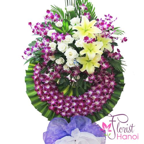 | Kind of flowers | White roses, Purple Dendrobium Orchid, Lily |