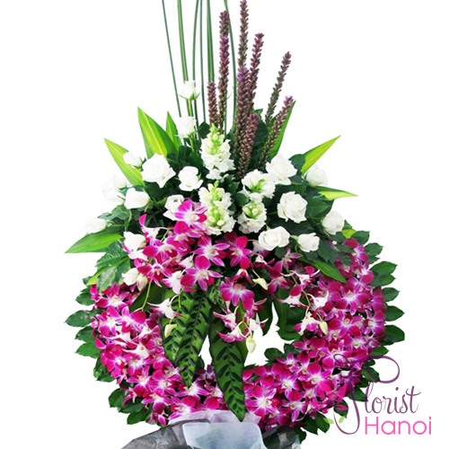 | Kind of flowers | Dendrobium Orchid, White roses, Liatris Spicata, Delphinium |