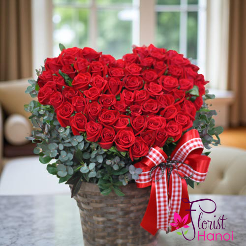 Heart shape rose basket in Hanoi – A perfect romantic gift