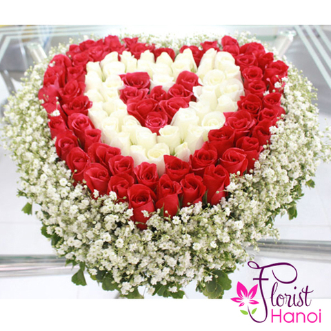 There are a number of ways to show that special person in your life how much you care, but we personally think roses are the best option! Take it a step further by choosing our heart of roses arrangement in red and white for an especially romantic message. Our beautiful roses and baby breath are artfully arranged into a heart shape, perfect gift for Valentine’s day, birthday, anniversary…┬á
