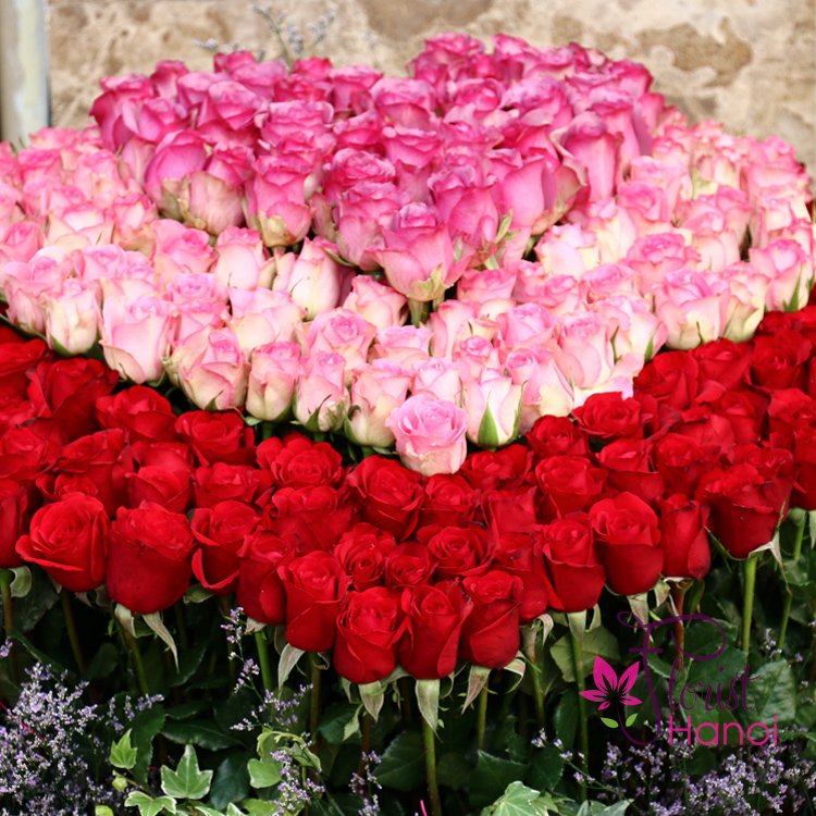 If you think someone is really special, they deserve to know it with a flower arrangement. Choose our heart of rose arrangement in red and pink. It will stand out from other bouquets they’ve seen before and drive home the point that they mean so much to you. Our lovely pink roses are artfully arranged into a heart shape with message: “love you so much”.