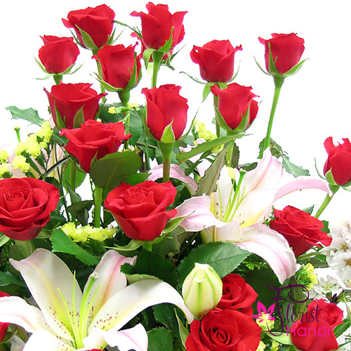 | Kind of flowers | Red roses, pink lilies |