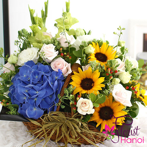 Celebrate the beauty of a floral arrangement that appears as if it was picked straight from fields. Florist arranged┬áwith Summer flowers including sunflowers, pink roses, Hydrangea and more. Delivered with the arrangement is a woven basket. Send flowers to celebrate today’s special occasion: new home, birthday…┬á