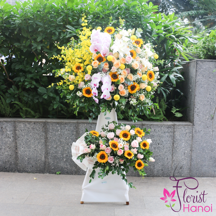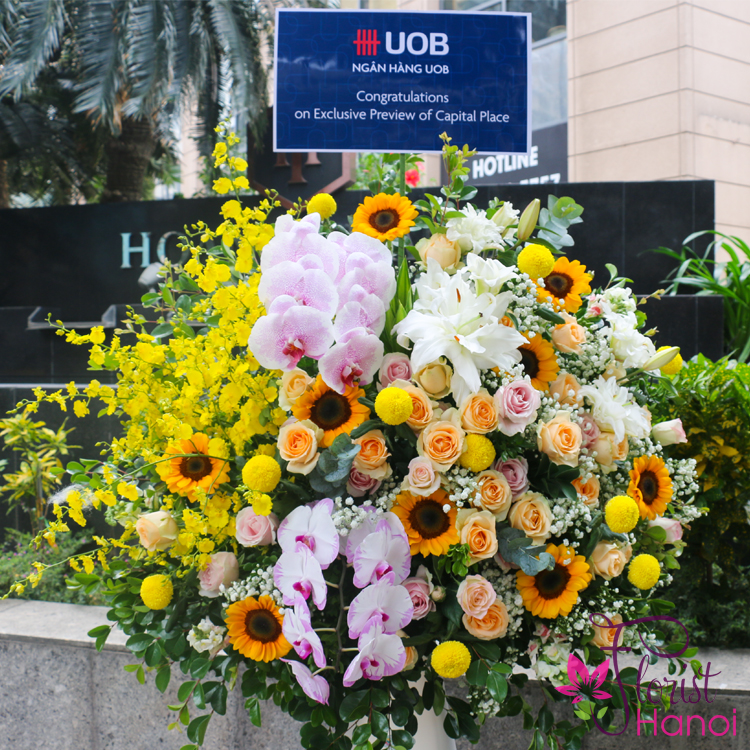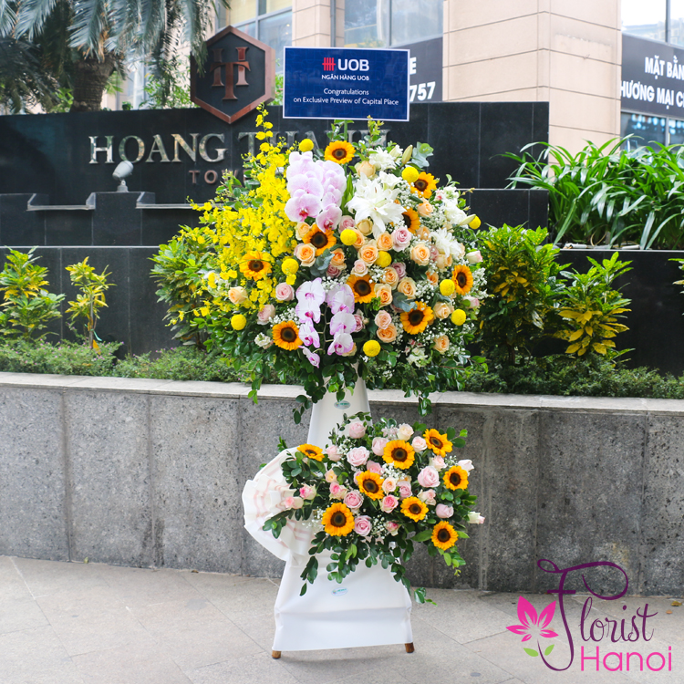 Need grand opening flowers with a contemporary design? Dedicated to special occasion, this flower stand of stunny yellow stands out from the rest. It is sure to leave an impression and it is perfect for opening day.