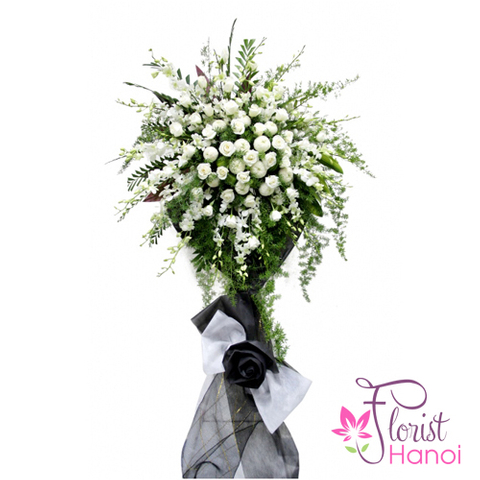 | Kind of flowers | White Roses, Dendrobium Orchid |