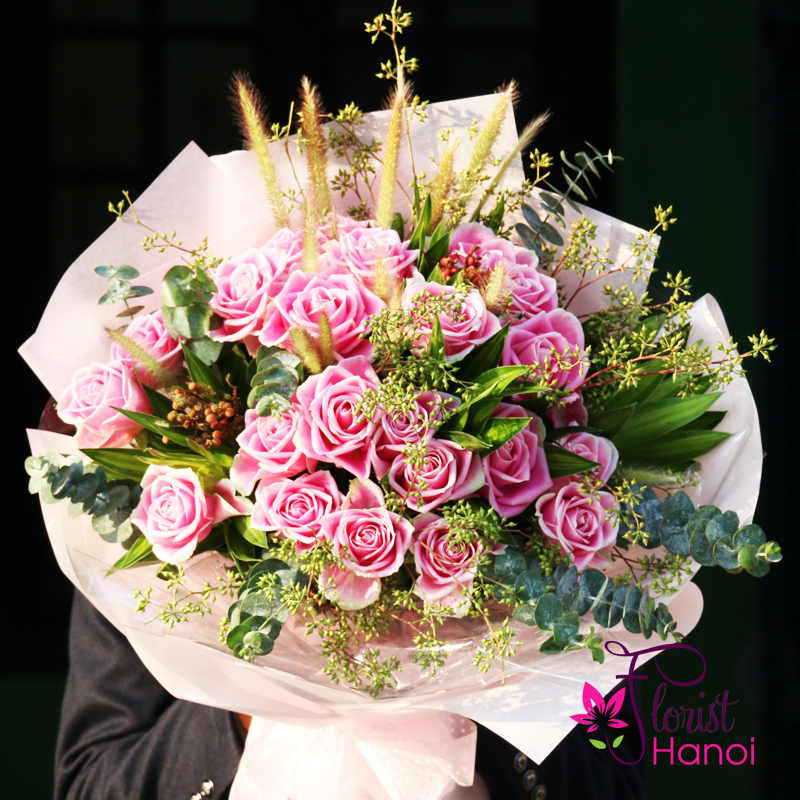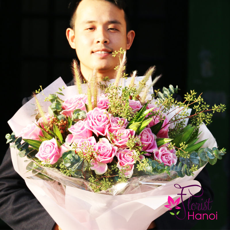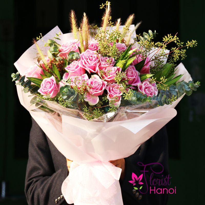 Pink roses bouquet to hanoi delivery now