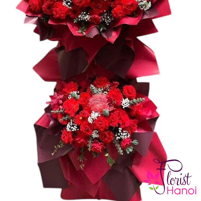 Red flower stand for grand opening ceremony