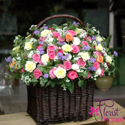 Our assorted flower basket is the ultimate celebration arrangement. These vibrant blooms, available in bouquet of 99 roses will brighten up any room. Perfect for a birthday or anniversary…