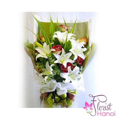 Sincerity and purity. These are just two of the qualities expressed by combining the white lily together with the sensitive pink of miniature roses. Whether you with to say thank you for someone that is there for you or to bring feelings of gratitude and love, this bouquet is the perfect choice for you.