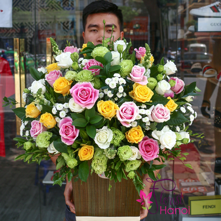 Send mixed roses basket to Hanoi